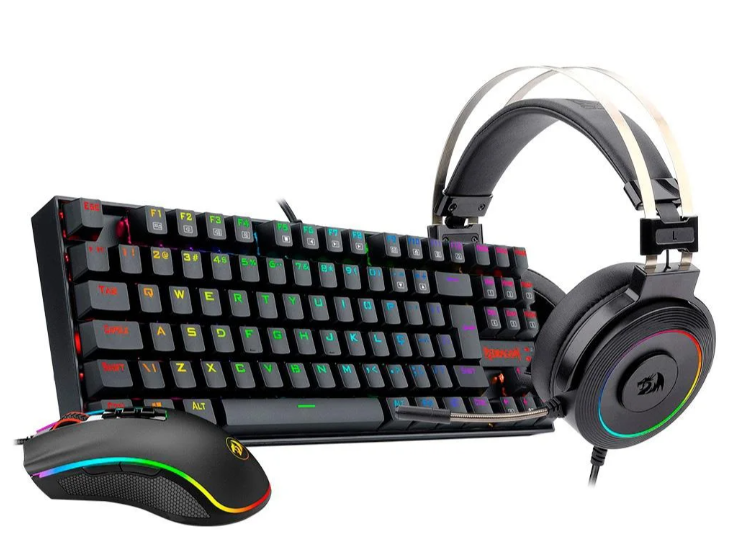 Kit gamer com um setup completo de alto desempenho nos jogos em um único pacote. Todos os itens possuem iluminação RGB Redragon Chroma trazendo mais brilho para seu setup. Headset com som surround 7.1 virtual para maior imersão nos jogos e filmes. Teclado no formato TKL compacto resultando em mais espaço para movimentos do mouse. Mouse com sensor PIXART PMW3327 de alta performance (20 G / 100 IPS).